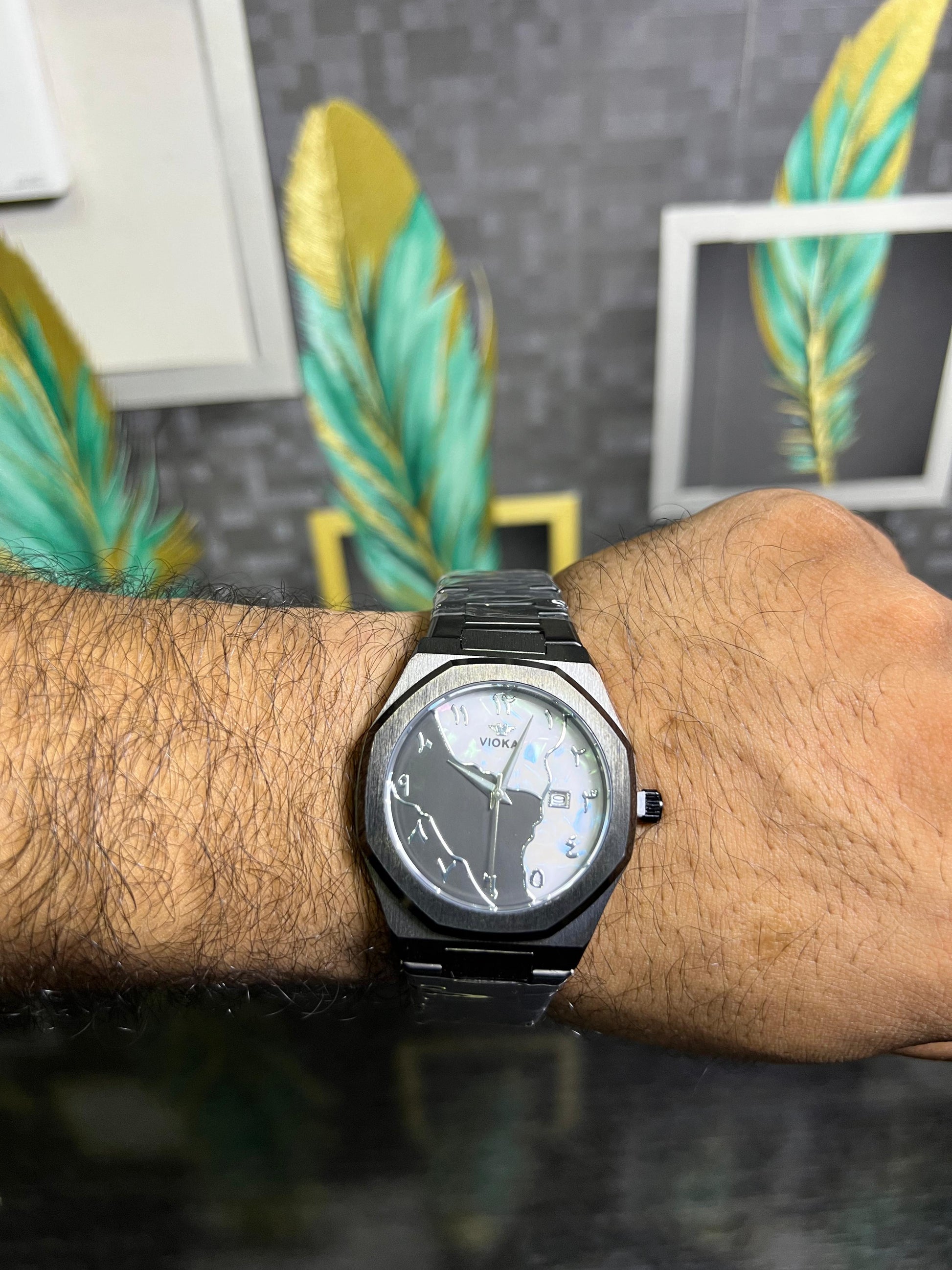 ✔ Unique marble-effect dial with aura design